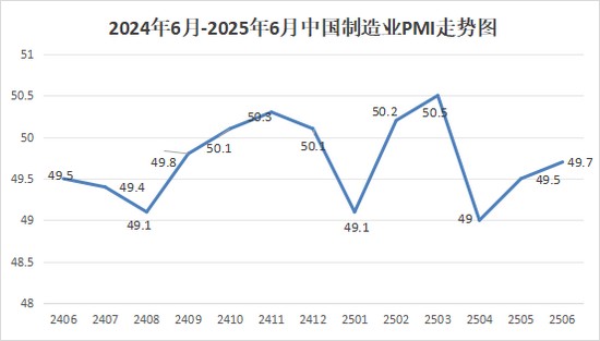 中国物流与采购联合会、国家统计局服务业调查中心发布的2025年6月份中国制造业采购经理指数(PMI)为49.7%,比上月上升0.2个百分点。 制造业PMI(经季节调整) (%)50%=与上月比较无变化  从企业规模来看,大型企业PMI为51.2%,比上月上升0.5个百分点;中型企业PMI为48.6%,比上月上升1.1个百分点;小型企业PMI为47.3%,比上月下降2个百分点。 从13个分项指数来看,同上月相比,生产指数、新订单指数、新出口订单指数、积压订单指数、产成品库存指数、采购量指数、进口指数、购进价格指数、出厂价格指数、原材料库存指数和供应商配送时间指数上升,指数升幅在0.2至2.6个百分点之间;从业人员指数和生产经营活动预期指数下降,指数降幅分别为0.2和0.5个百分点。 特约分析师张立群认为: 6月份PMI指数小幅回升,表明一系列增量政策的效果继续显现。订单类指数回升反映扩大内需政策效果有所显现;生产指数、采购量指数上升反映企业生产经营活动有回暖趋势。同时应注意到PMI指数仍处荣枯线下,生产经营活动预期指数仍在下降,反映需求不足的企业占比仍在扩大,市场引导的需求收缩对制造业生产投资的制约仍然突出。当前宏观经济政策逆周期调节与市场引导的需求收缩正处相互角力的关键阶段,必须坚持不懈持续加大扩内需各项政策力度,特别要显著加强政府公共产品投资力度,扩大投资规模,有效有力带动制造业企业订单显著增加,带动制造业生产投资持续活跃。 生产指数为51%,比上月上升0.3个百分点。 新订单指数为50.2%,比上月上升0.4个百分点。 新出口订单指数为47.7%,比上月上升0.2个百分点。 积压订单指数为45.2%,比上月上升0.4个百分点。 产成品库存指数为48.1%,比上月上升1.6个百分点。 采购量指数为50.2%,比上月上升2.6个百分点。 进口指数为47.8%,比上月上升0.7个百分点。 购进价格指数为48.4%,比上月上升1.5个百分点。 出厂价格指数为46.2%,比上月上升1.5个百分点。 原材料库存指数为48%,比上月上升0.6个百分点。 从业人员指数为47.9%,比上月下降0.2个百分点。 供应商配送时间指数为50.2%,比上月上升0.2个百分点。 生产经营活动预期指数为52%,比上月下降0.5个百分点。 制造业采购经理调查说明 1.主要指标解释 采购经理指数(PMI),是通过对企业采购经理的月度调查结果统计汇总、编制而成的指数,它涵盖了企业采购、生产、流通等各个环节,是国际上通用的监测宏观经济走势的先行性指数之一,具有较强的预测、预警作用。PMI通常以50%作为经济强弱的分界点,PMI高于50%时,反映制造业经济扩张;低于50%,则反映制造业经济收缩。 2.调查范围 涉及《国民经济行业分类》 (GB/T4754-2017)中制造业的31个行业大类,3000家调查样本。 3.调查方法 制造业采购经理调查采用PPS(Probability Proportional to Size)抽样方法,以制造业行业大类为层,行业样本量按其增加值占全部制造业增加值的比重分配,层内样本使用与企业主营业务收入成比例的概率抽取。 本调查由国家统计局直属调查队具体组织实施,利用国家统计联网直报系统对企业采购经理进行月度问卷调查。 4.计算方法 (1)分类指数的计算方法。制造业采购经理调查指标体系包括生产、新订单、新出口订单、在手订单、产成品库存、采购量、进口、主要原材料购进价格、出厂价格、原材料库存、从业人员、供应商配送时间、生产经营活动预期等13个分类指数。分类指数采用扩散指数计算方法,即正向回答的企业个数百分比加上回答不变的百分比的一半。由于非制造业没有合成指数,国际上通常用商务活动指数反映非制造业经济发展的总体变化情况。 (2)制造业PMI指数的计算方法。制造业PMI是由5个扩散指数(分类指数)加权计算而成。5个分类指数及其权数是依据其对经济的先行影响程度确定的。具体包括:新订单指数,权数为30%;生产指数,权数为25%;从业人员指数,权数为20%;供应商配送时间指数,权数为15%;原材料库存指数,权数为10%。其中,供应商配送时间指数为逆指数,在合成制造业PMI指数时进行反向运算。 5.季节调整 采购经理调查是一项月度调查,受季节因素影响,数据波动较大。现发布的指数均为季节调整后的数据。 来源:中国物流与采购联合会