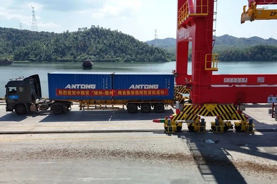近日,首批满载玉米的集装箱货柜停靠赣州五云综合枢纽码头,标志着赣州市“北粮南运”全水运通道正式贯通,赣州粮食运输向更具成本优势的“全链条水路联运”迈出关键一步。 在此次“北粮南运”全水运集装箱运输中,港发公司依托“赣沪通”物流产品,联合内贸船公司构建起北方至赣州的高效水运通道。这一通道不仅为赣南地区粮食运输开辟了新路径,更凸显了赣州五云综合枢纽码头作为区域物流核心枢纽的战略价值。 这批从辽宁锦州启程的粮食经水路直达码头后,依托码头先进装卸设备及成熟的“一次委托、一箱到底”全链条服务体系,实现粮食高效转运至本地饲料企业,达成“港到厂”无缝衔接。 赣州粮食贸易企业负责人表示:“相比以往需辗转多地的多式联运模式,新通道不仅使物流成本直降30%以上,更显著降低了粮食损耗风险。” 下一步,港发公司将充分发挥航线网络与赣州五云综合枢纽码头的区位优势,进一步激活水运潜力,为区域经济高质量发展注入更强劲动能。
